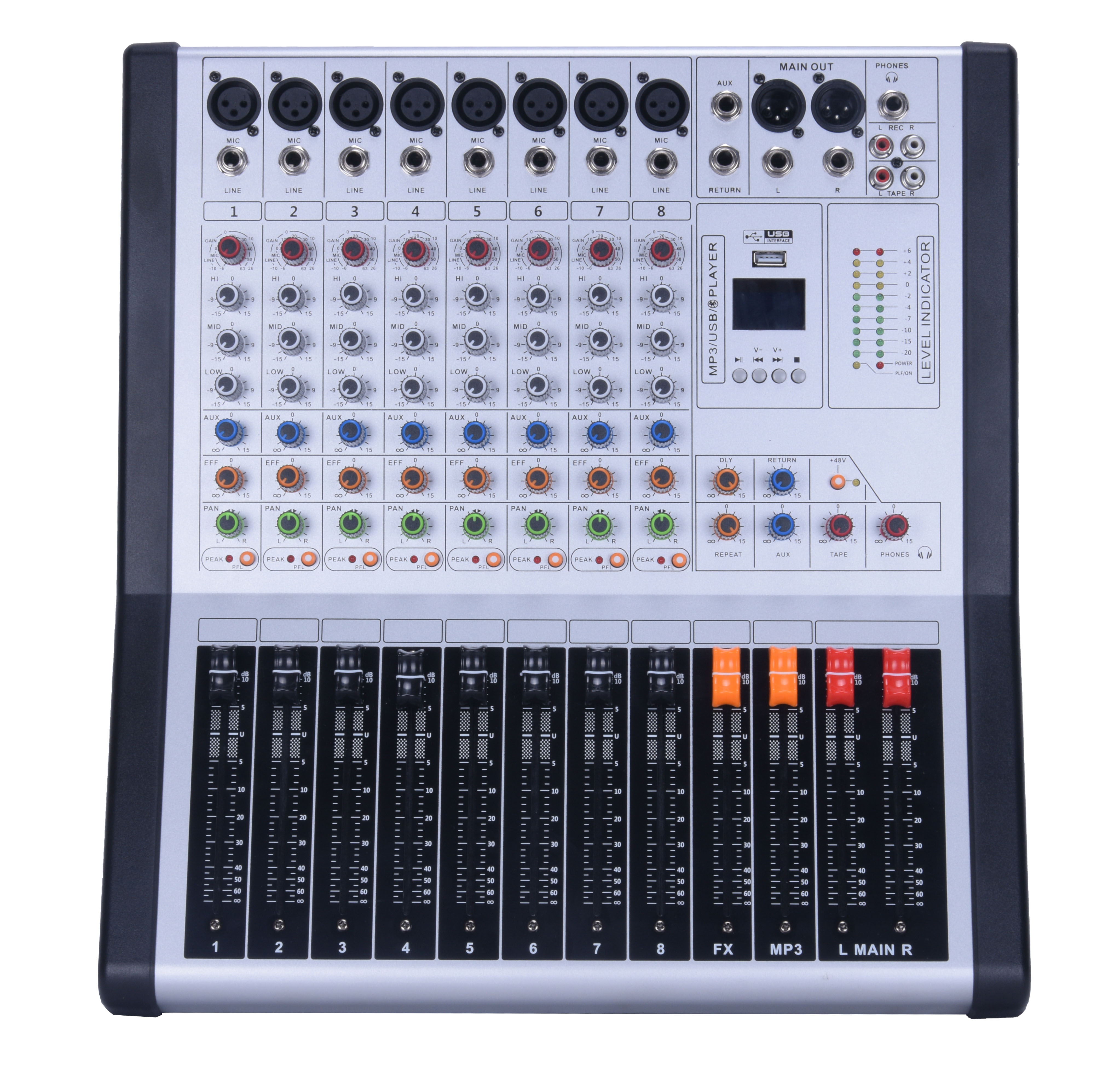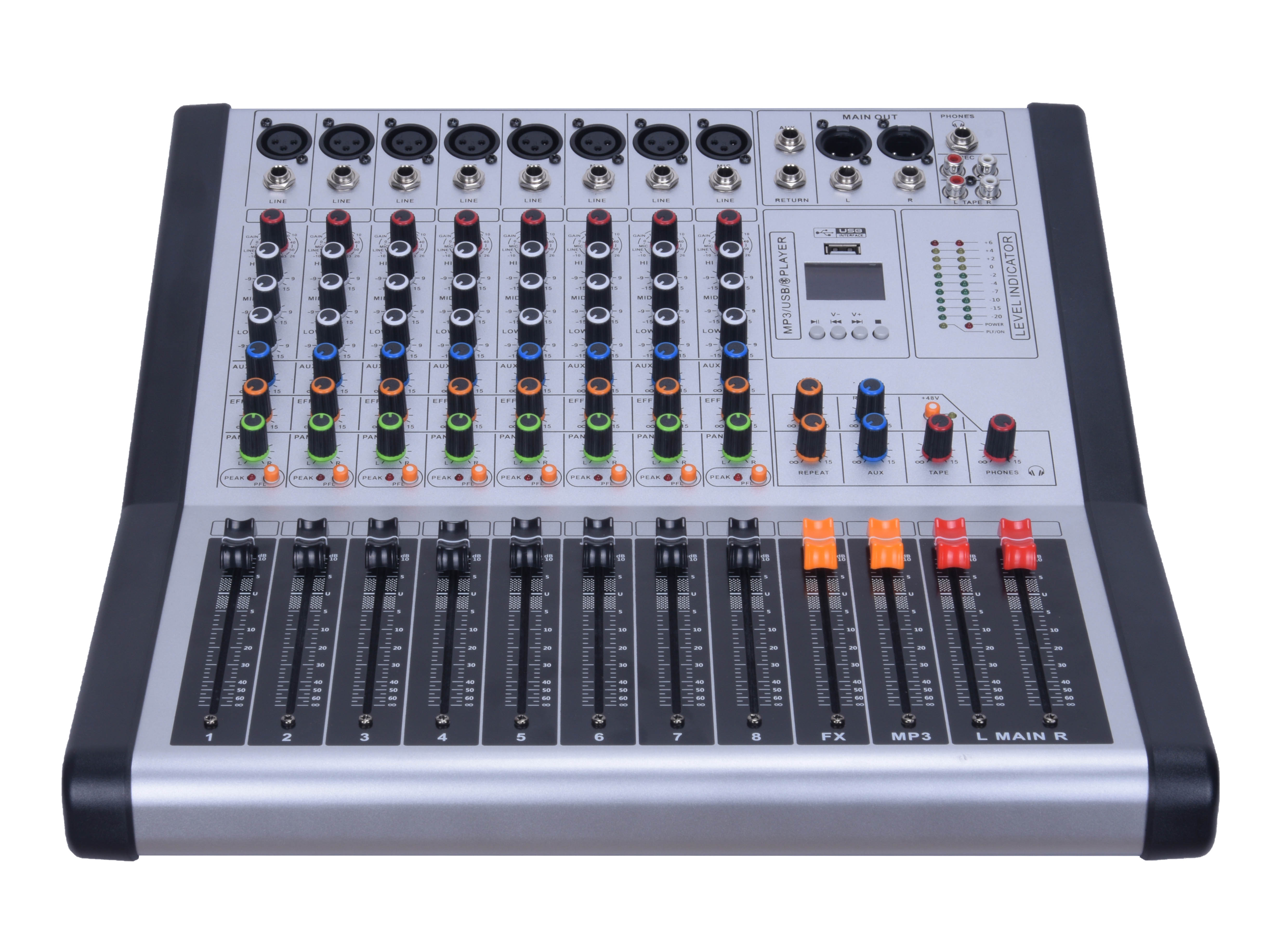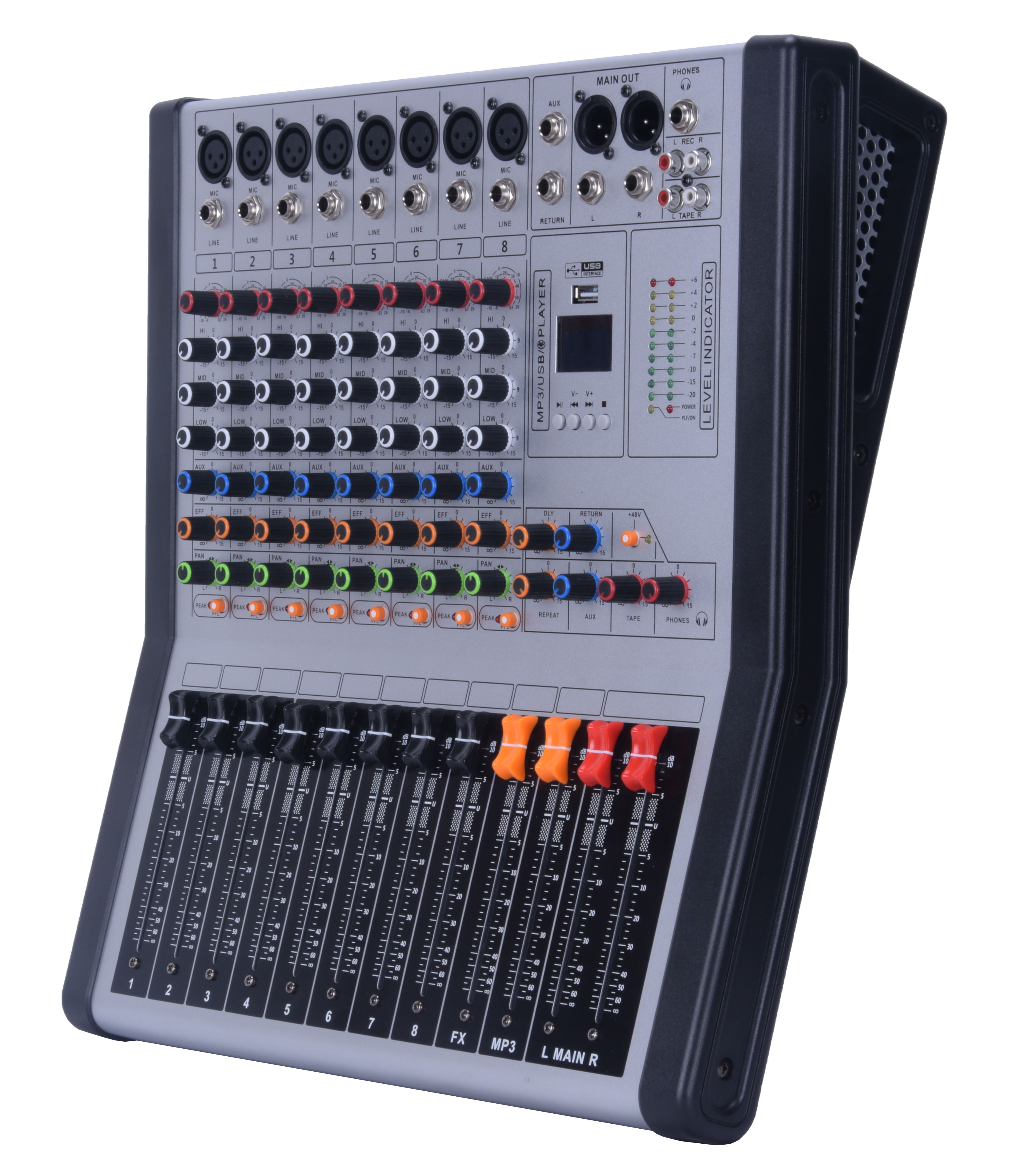 ● 8個單聲道輸入配備高品質(zhì)話筒放大器。